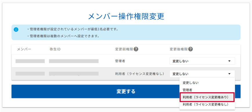 ライセンスの割り当ては、以下の方が変更することができます。