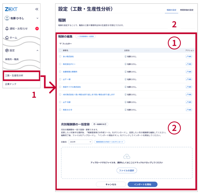工数・生産性分析を利用するには、事前に報酬データの登録が必要です。