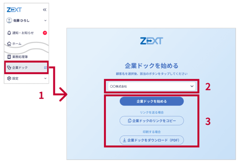 「企業ドックのリンクをコピー」をクリックし、コピーされたURLを顧問先に送付してください。